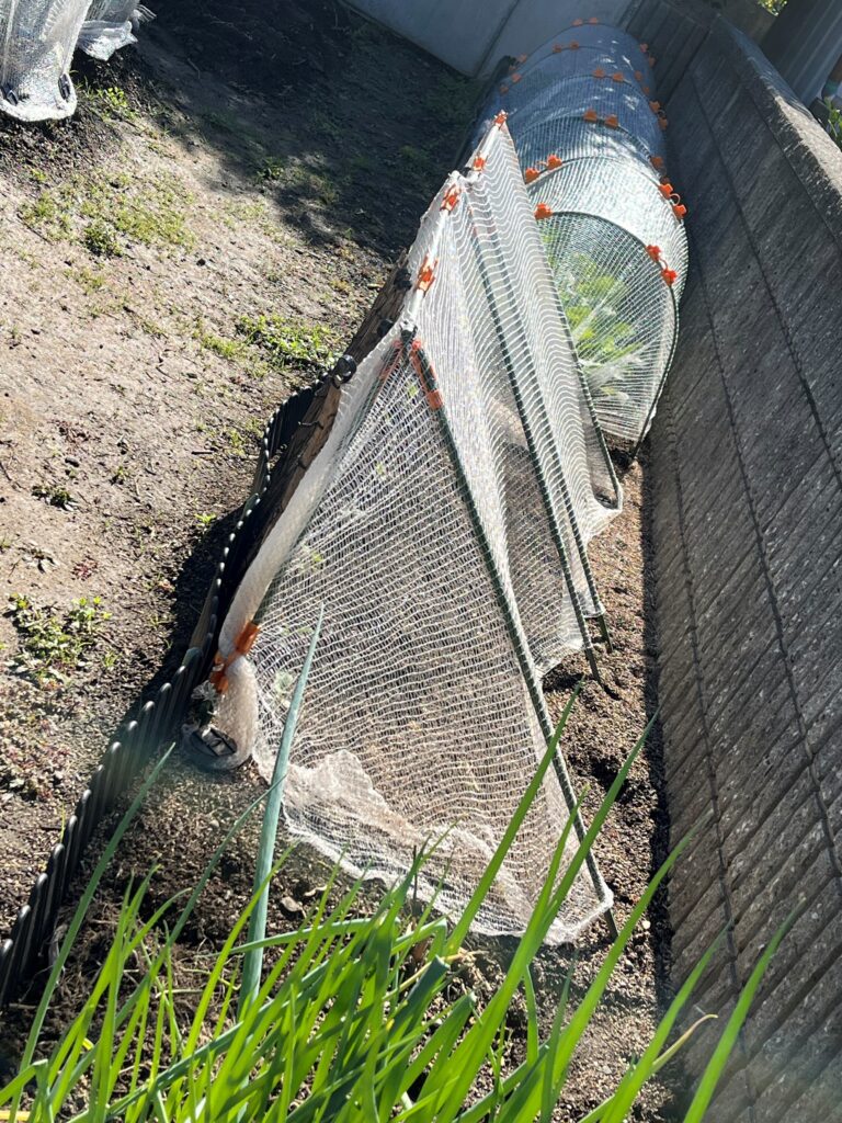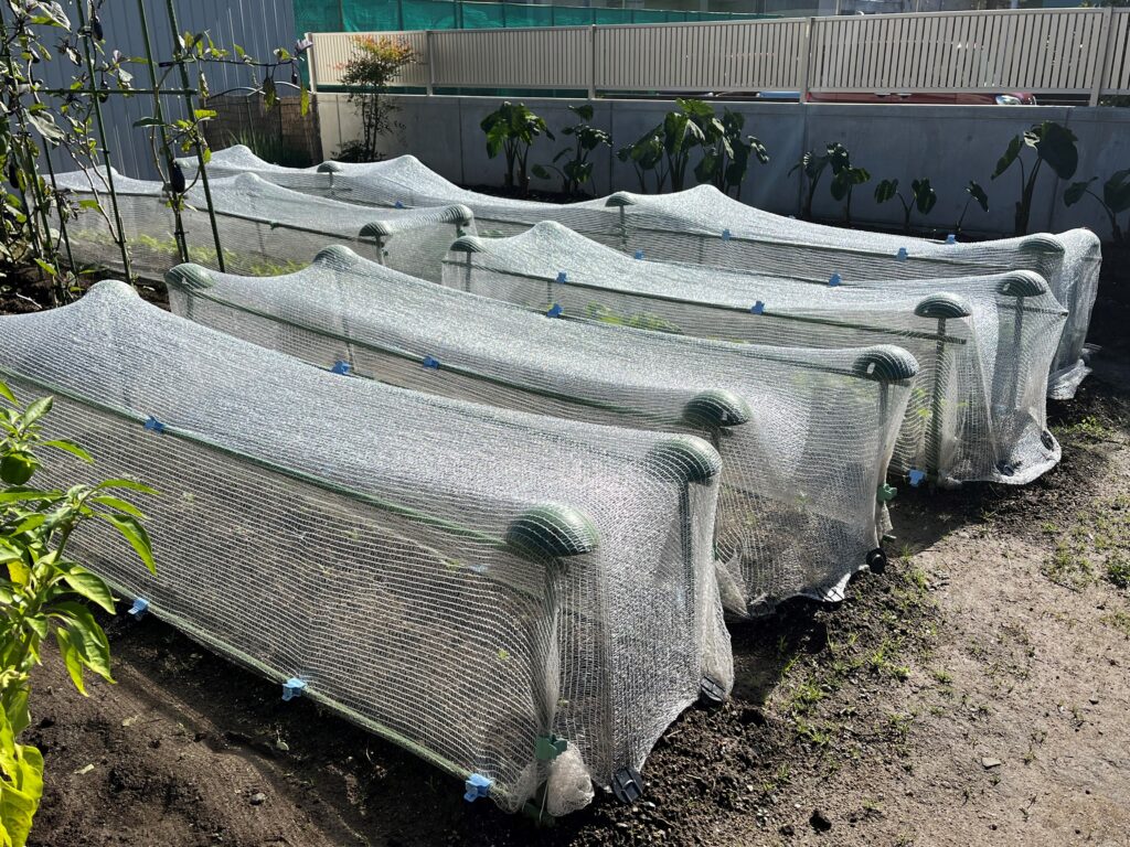 先日はどうもありがとうございました。現在の畑の様子です。虫除けくんは自在に形を変えられるので大変重宝しております。もう少し幅があれば囲いが出来るので、可能であれば是非ご検討をお願い致します。雪対策が出来ましたら、また様子をお知らせ致します。